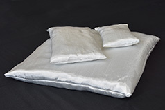 Der Mantel des Perleen B15 Verpackungskissens besteht aus reißfestem, nicht brennbarem Glasfasergewebe. Gefüllt sind die staubarmen Kissen (ca. 45 x 50 cm) mit ca. 15 Liter Perleen 444. Das Material ist elektrisch nicht leitend, weitgehend frei von Kohlenstoff und eignet sich sehr gut zum Transport von Lithium-Ionen-Batterien, gefährlichen Chemikalien und Akkus.