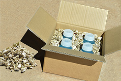 Mit den unbrennbaren Perleen B15 Verpackungskissen lassen sich Gefahrstoffe staubarm und sicher verpacken.